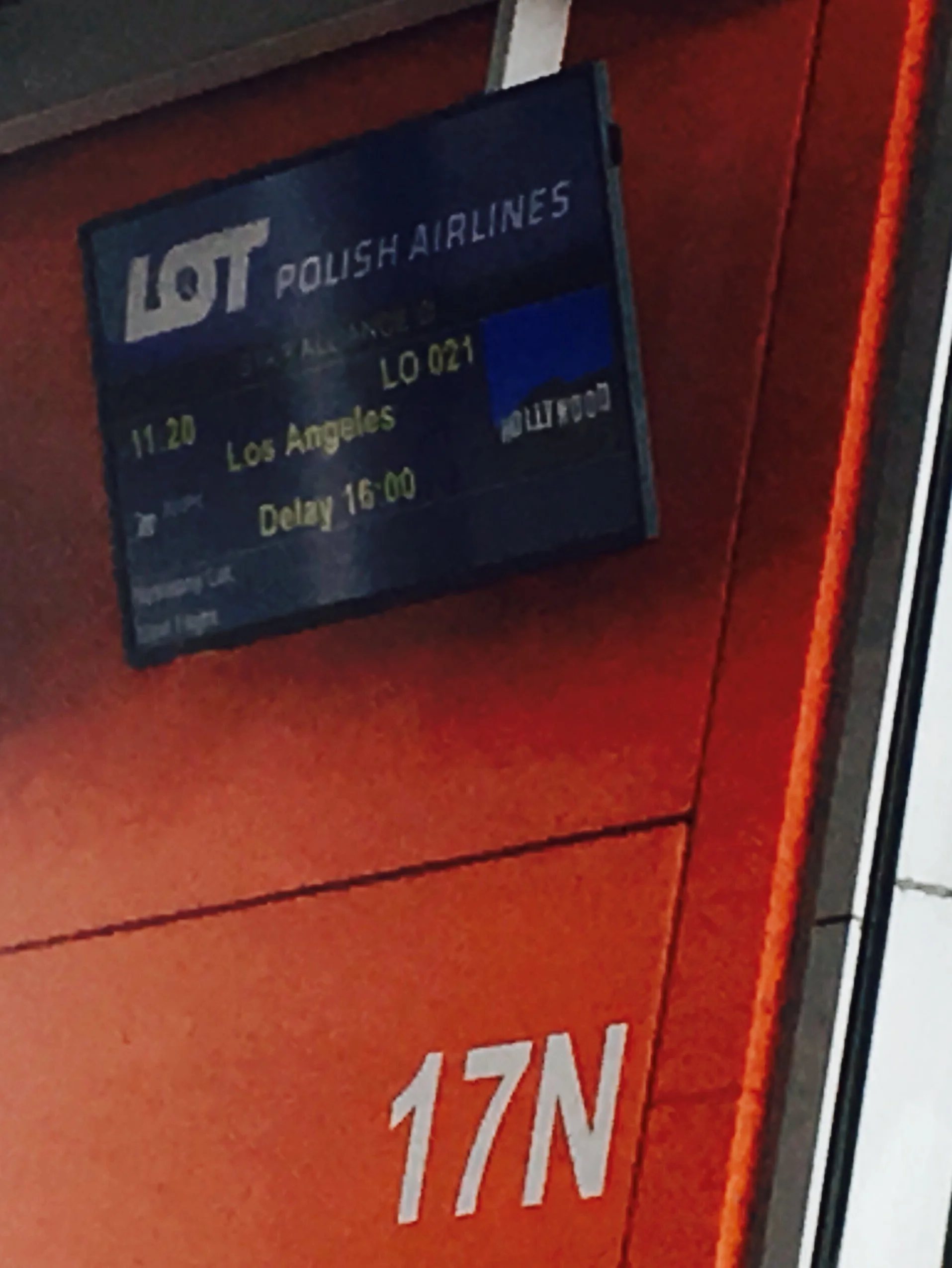 I found out why. I parced my nut-free airplane food into my backpack, threw my toiletries into rolly-bag, and I was off. My cab arrived at 2:30, and I began the long transit. I knew I was bound for around 23 hours of travel: 2 hours pre-board; 4 hour flight to Warsaw; 5 hour layover; and a 12 hour trip from Warsaw to Los Angeles. Just writing it now feels exhausting.
